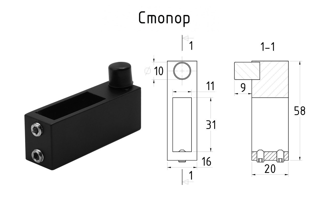 Коннектор регулируемый для трека 30х10 мм, нержавеющая сталь AISI 304, черная t465 BL купить в Омске