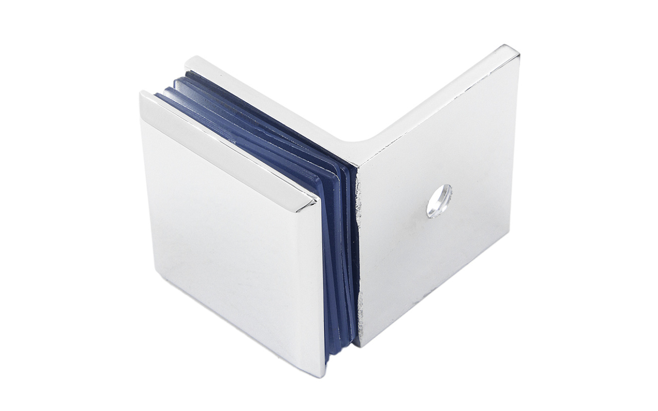 Коннектор для душевой кабины, стена-стекло 90°, 45х45 мм. Материал - латунь-хром, поверхность - полированная