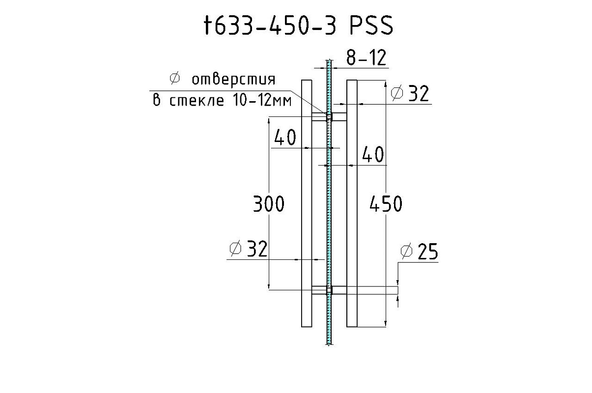 Ручка двухсторонняя для стекла 8-12 мм, 32x300x450 мм, AISI 201, полированная t633-450-3 PSS