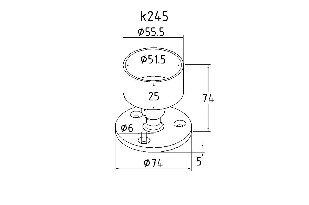 Фланец для трубы Ø50.8 мм, литой, полированный под 3 самореза 4.8 мм (AISI 304) k022