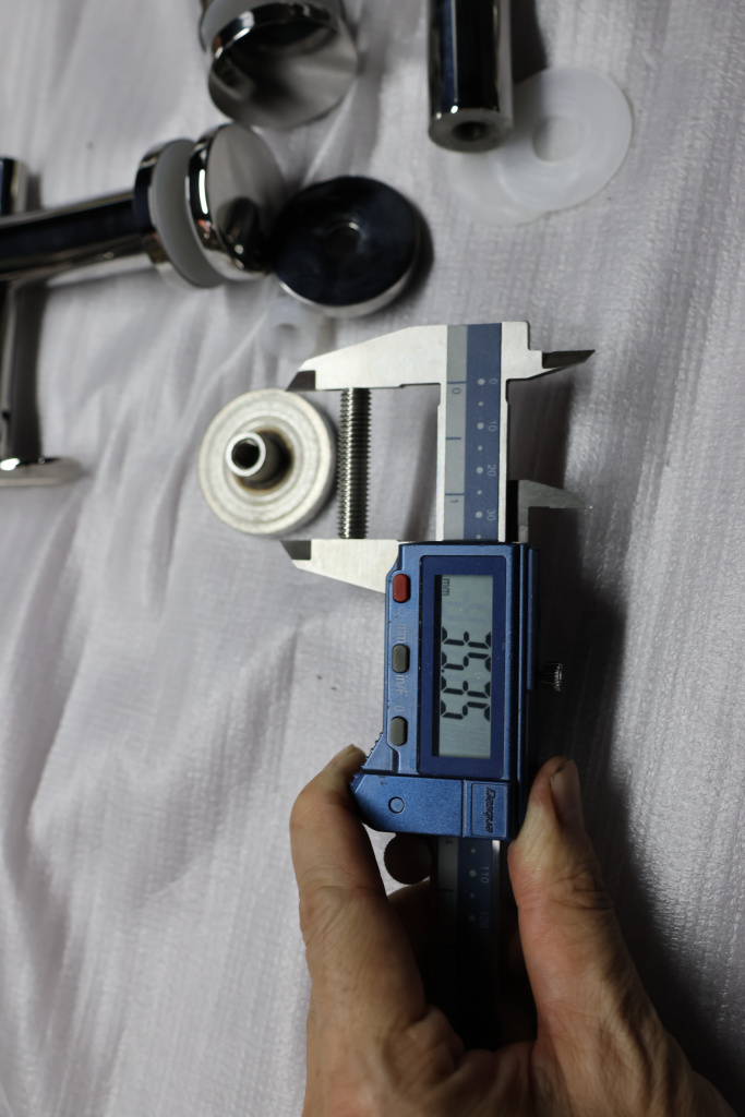 k241-5 выносной держатель поручня на стекло 8-20 мм, регулируемый, с ложементом, полированный, (AISI 304) под отверстие в стекле Ø17-18 мм