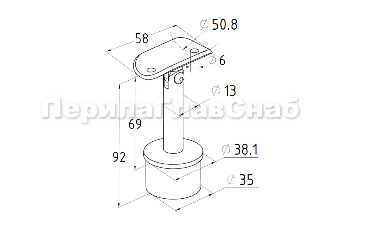 Наконечник палец с регулируемым ложементом под поручень Ø50.8 мм, на стойку Ø38.1х1,5 мм, литой, полированный, повышенной коррозионной стойкости. (AISI 316) k006-3