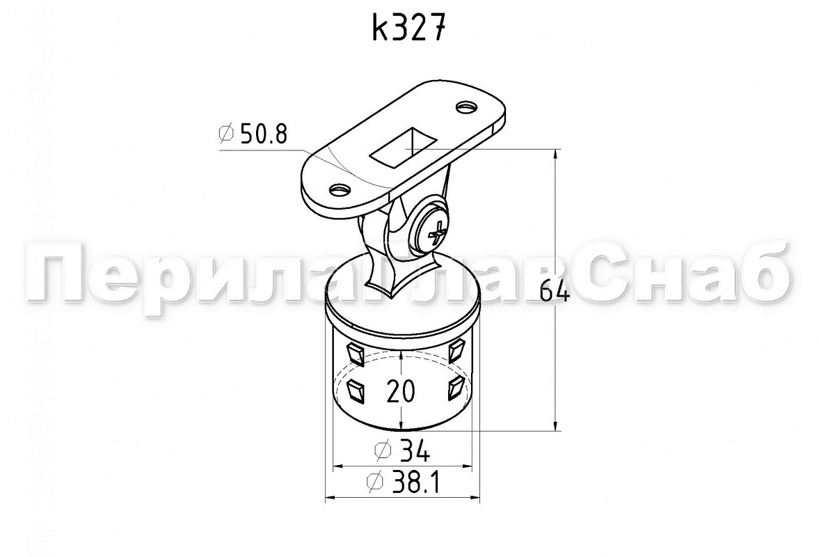 Наконечник на стойку Ø38.1 мм, с ложементом под поручень Ø50.8 мм, шарнирный, регулируемый, внутренний