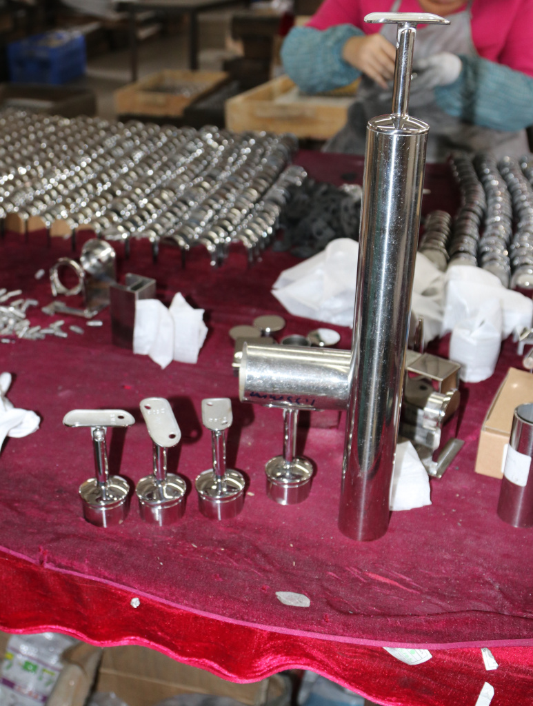Наконечник палец на стойку Ø42.4х1.5 мм, с регулируемым ложементом под поручень Ø50.8 мм, литой, полированный, повышенной коррозионной стойкости, нержавеющий AISI 316 k372-2