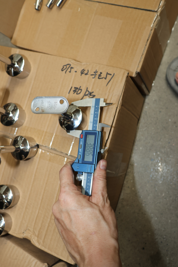 Наконечник палец на стойку Ø42.4х1.5 мм, с регулируемым ложементом под поручень Ø50.8 мм. Деталь литая, полированная, нержавеющая. марка стали - AISI 304