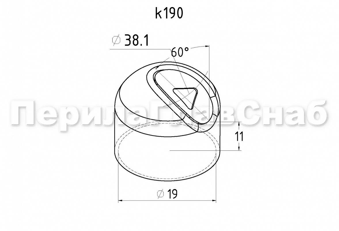 Наконечник штампованный (СПС) прямой 90° на трубу Ø19 мм, для поручня Ø38.1 мм, полированный, нержавеющий, 600 Grit, AISI 304, k191