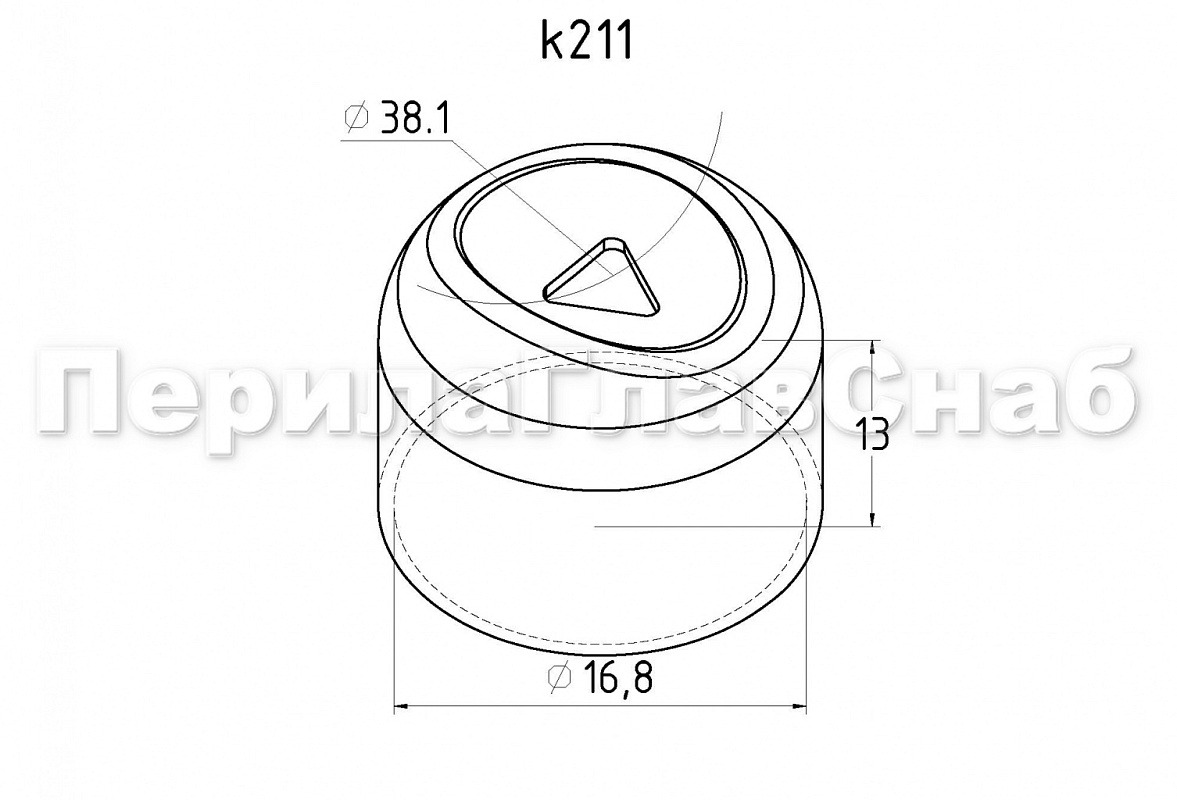 Наконечник штампованный (СПС) прямой 90° на трубу Ø16 мм, для поручня Ø38.1 мм, полированный, нержавеющий AISI 201 k211-3