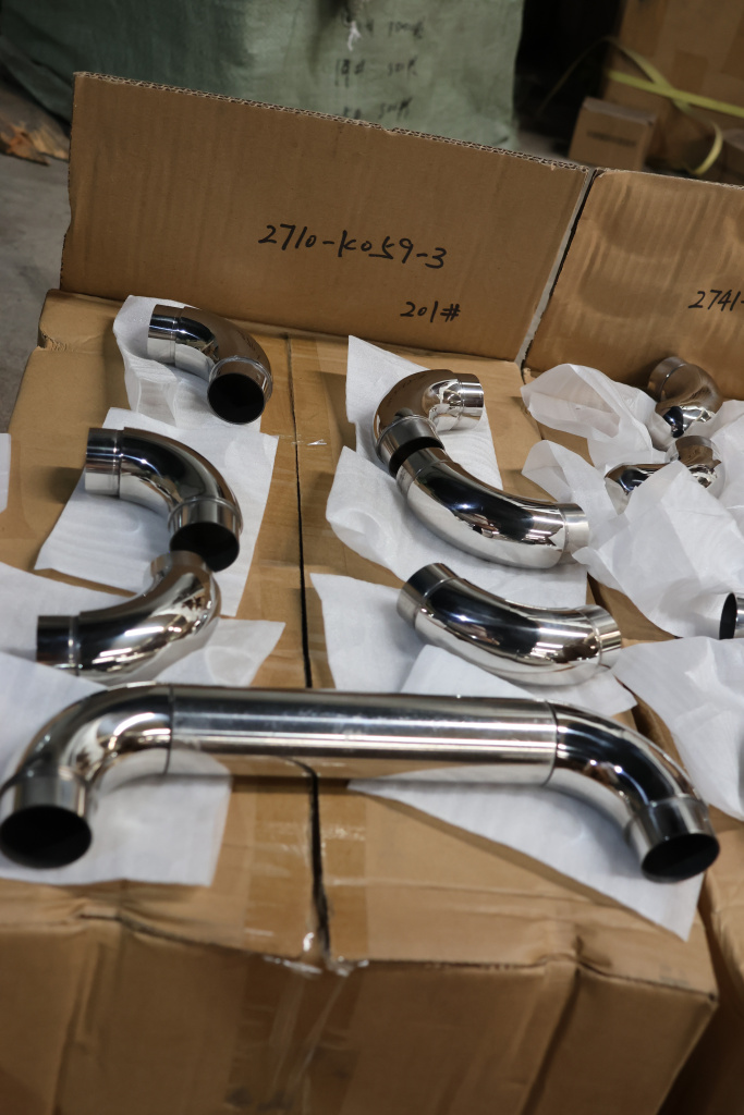 Отвод поручня под Ø38.1х1.5 мм, 90°, литой, полированный, со вставками, (AISI 201) k059-3