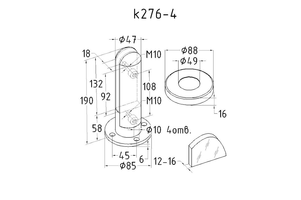 Предназначен для установки стеклянного ограждения высотой до 1200 мм.