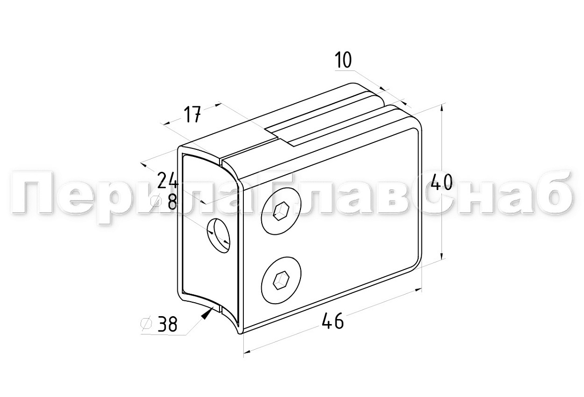 Стеклодержатель штампованный под стекло 8 мм (4+4 мм), под стойку Ø38.1 мм 40х24х55, полированный (AISI 304) k038