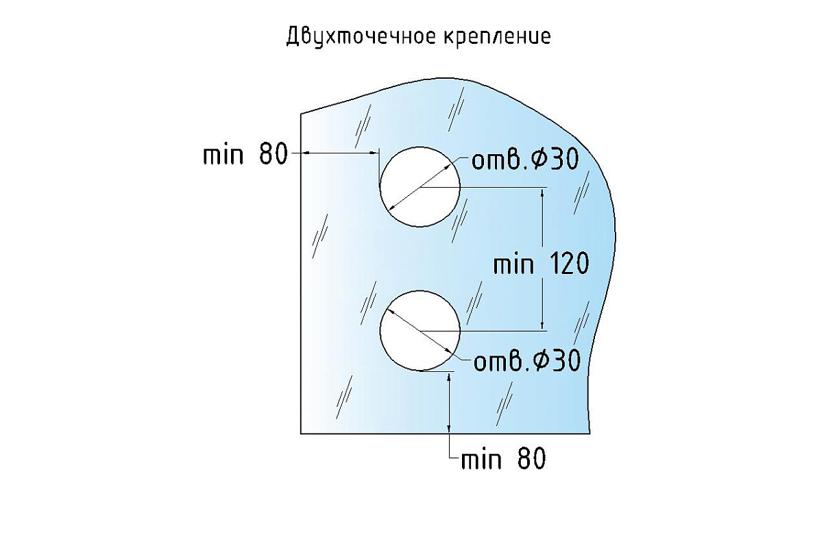 Точечный стеклодержатель для торцевого крепления несущего стекла в широчайшем диапазоне от 8 (4+4) мм до 40 (20+20) мм. Диаметр наружной (хрюшка) и внутренней шайб по 50 мм.