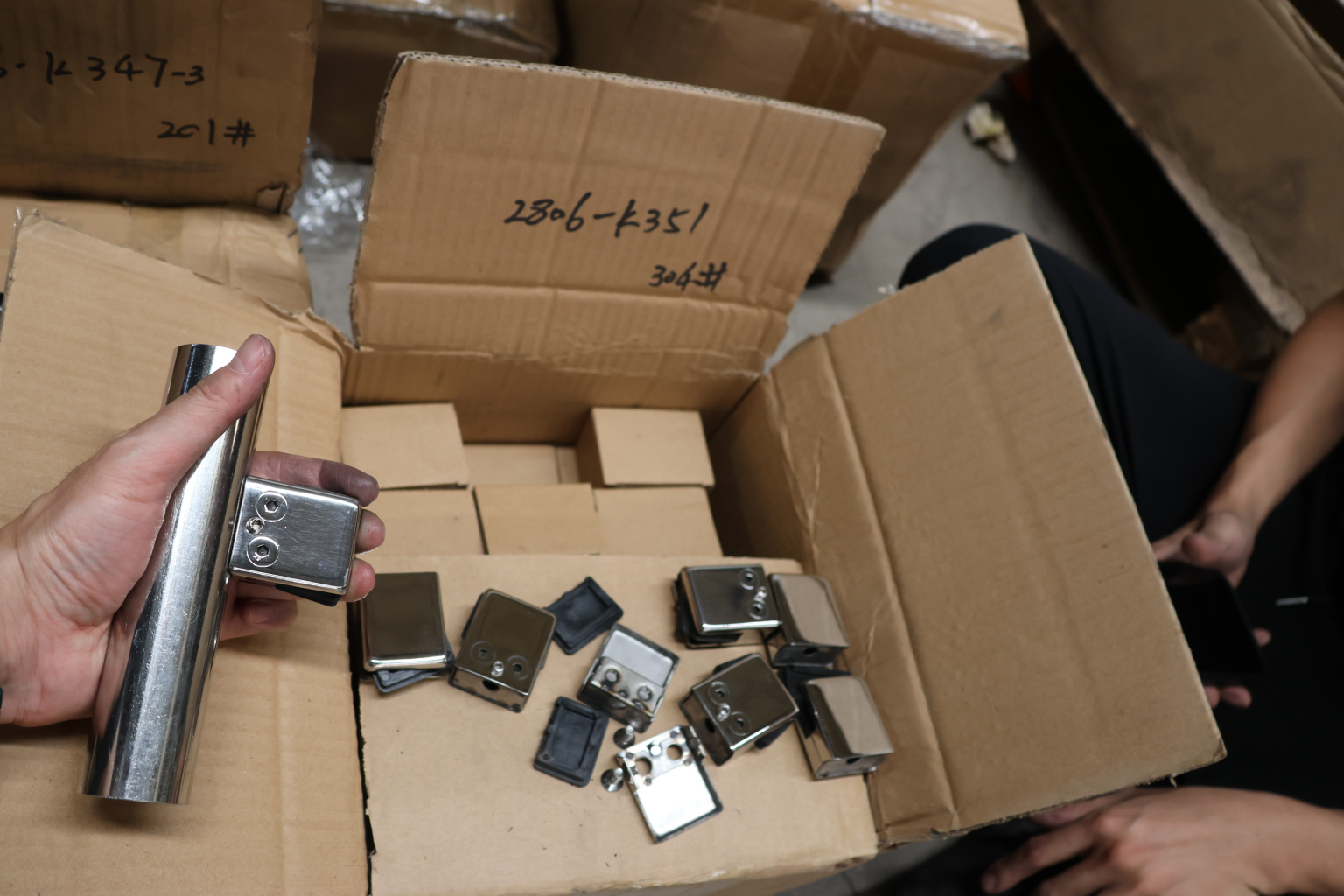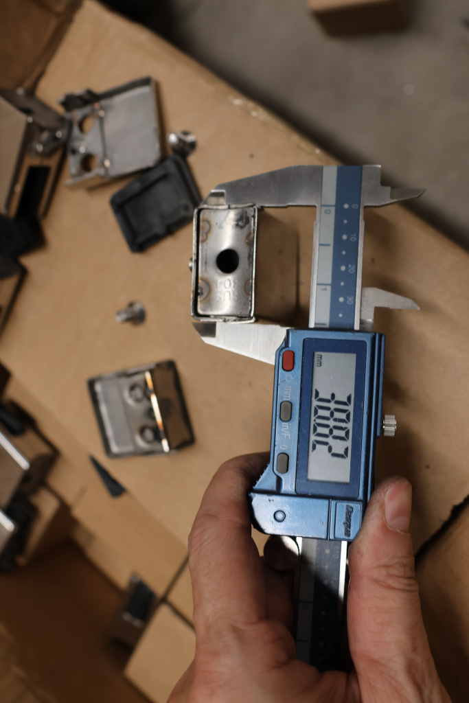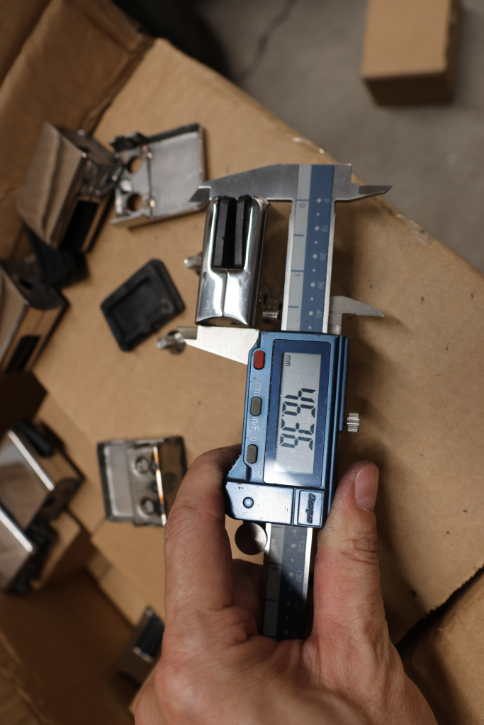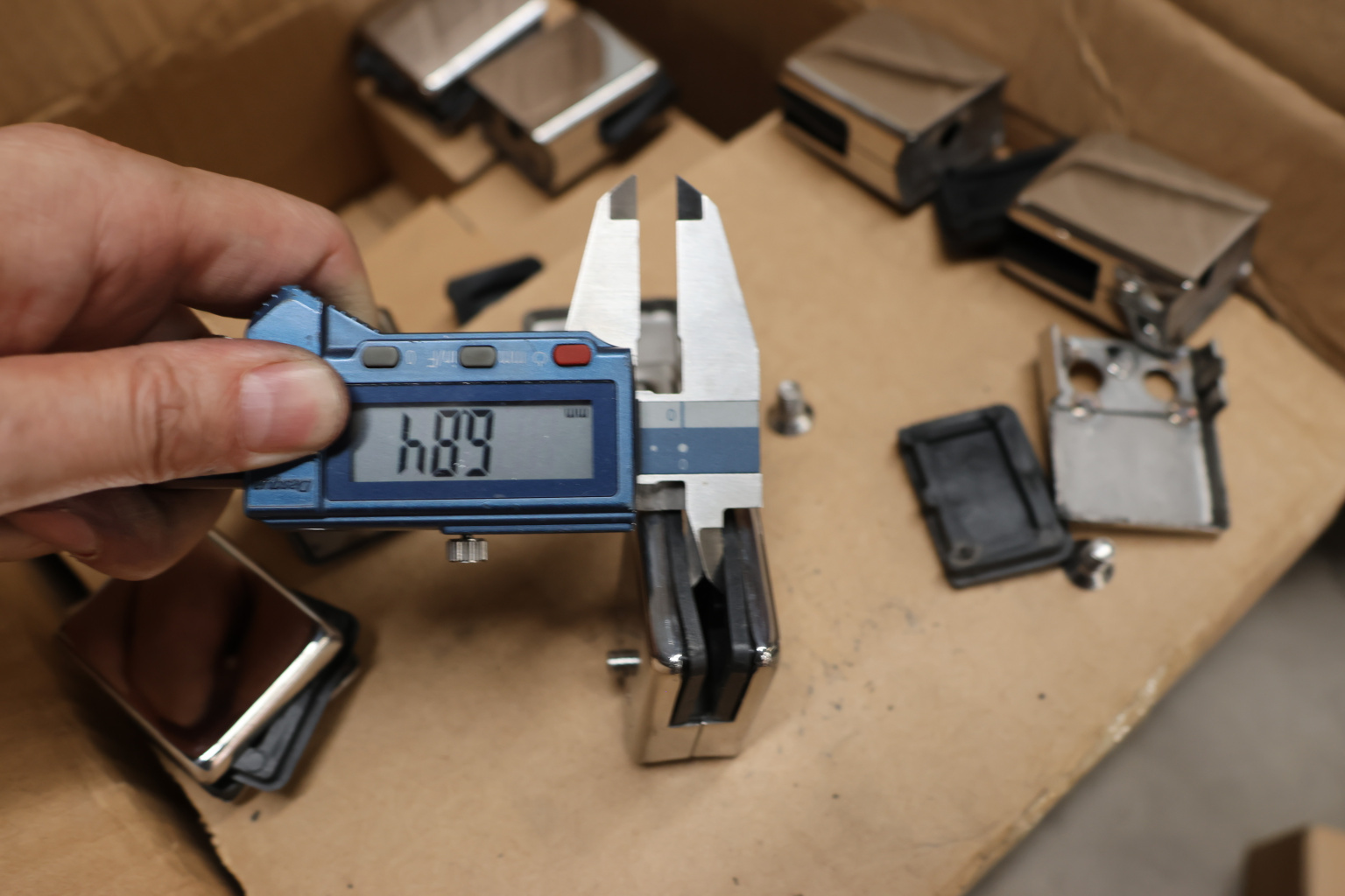 Стеклодержатель штампованный под стекло 8 мм (4+4 мм), квадратный, под стойку Ø38.1 мм (40х24х48), полированный (AISI 304) k351