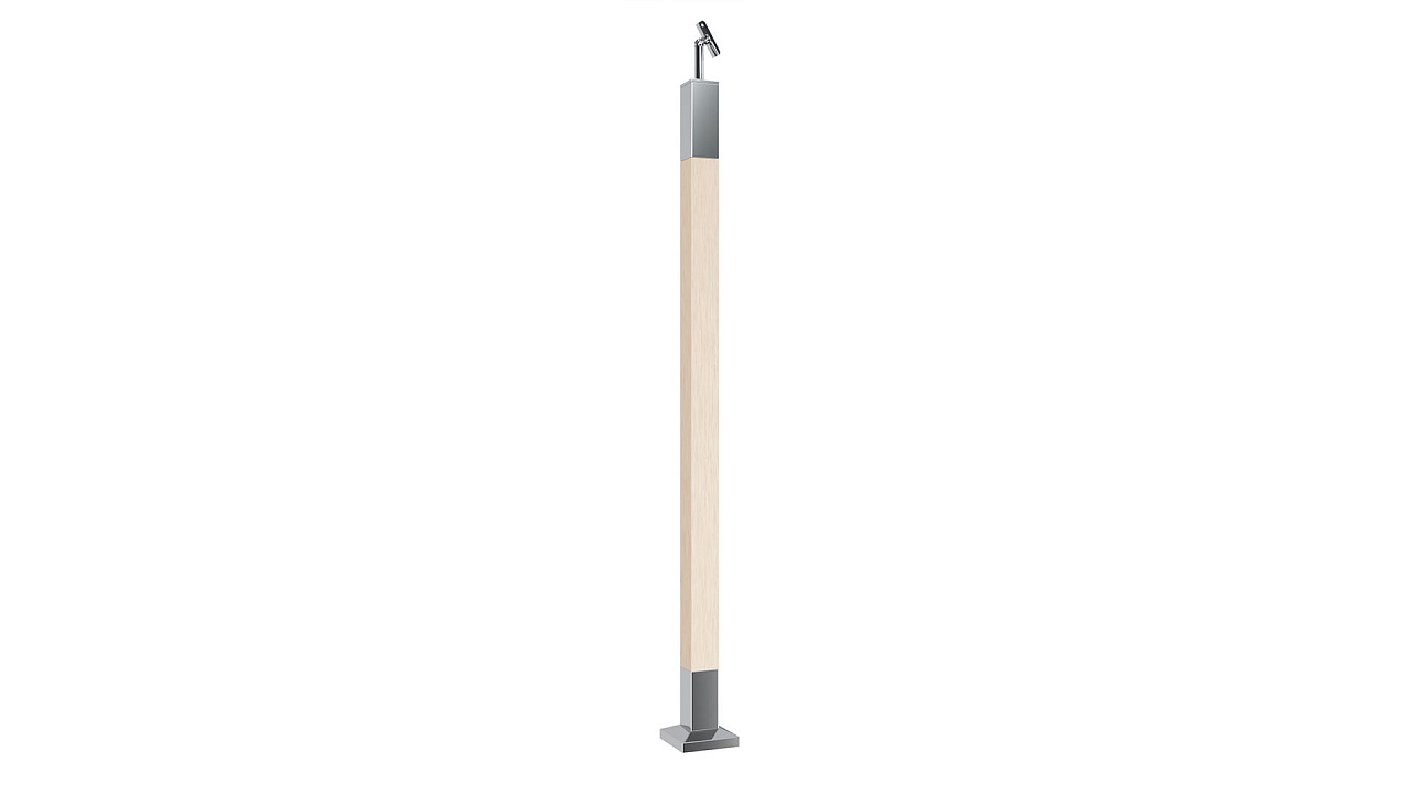Готовая стойка 40х40х950 мм, деревянная, со вставками из нержавеющей стали 2х100 мм с 2 зажимными стеклодержателями k740-4-L купить в Омске