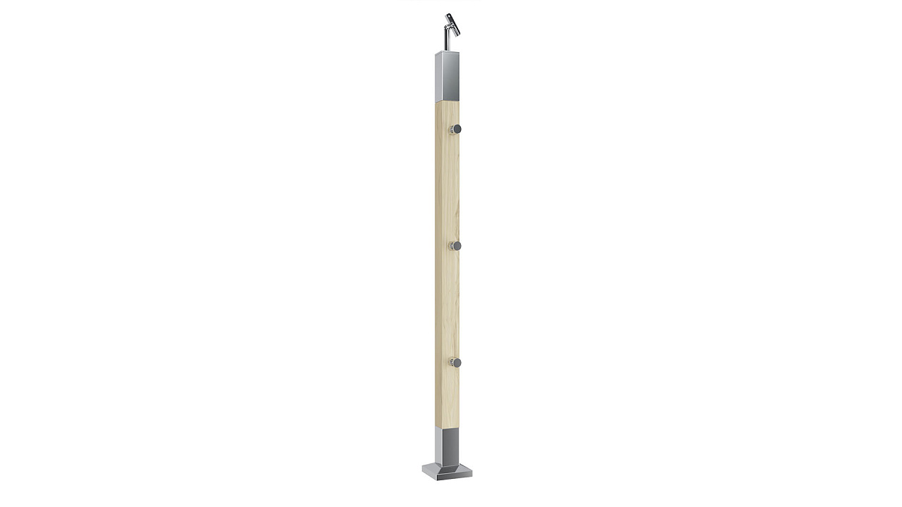Готовая стойка 40х40х950 мм, деревянная, со вставками из нержавеющей стали 2х100 мм, с 3 ригеледержателями