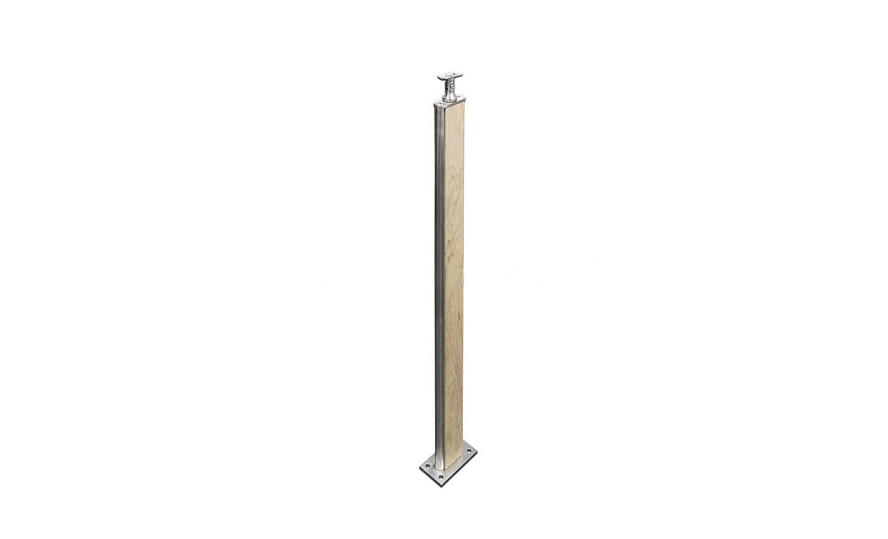 Стойка в сборе с деревянными вставками из дуба на 4 анкера шлиф.