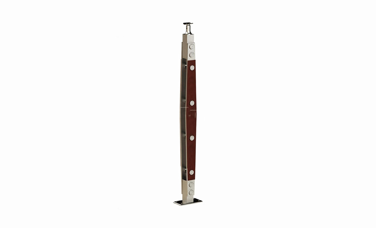 Готовая стойка 40х40х950 мм, деревянная, со вставками из нержавеющей стали 2х100 мм с 2 зажимными стеклодержателями k740-4-R купить в Омске
