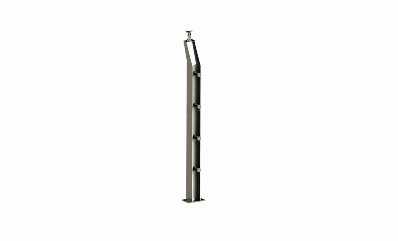 Стойка квадратная 40х40: 4 литых стеклодержателя, полированная, высота 950 мм (AISI 304) k746 купить в Омске
