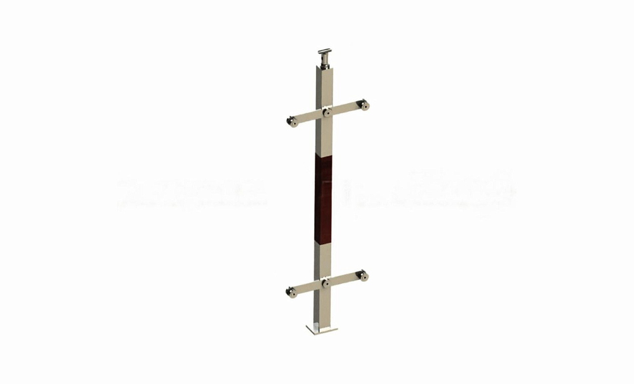 Готовая стойка Ø38,1х950 мм деревянная, со вставками из нержавеющей стали 2х100 мм с 2 стеклодержателями k741-2-R купить в Омске
