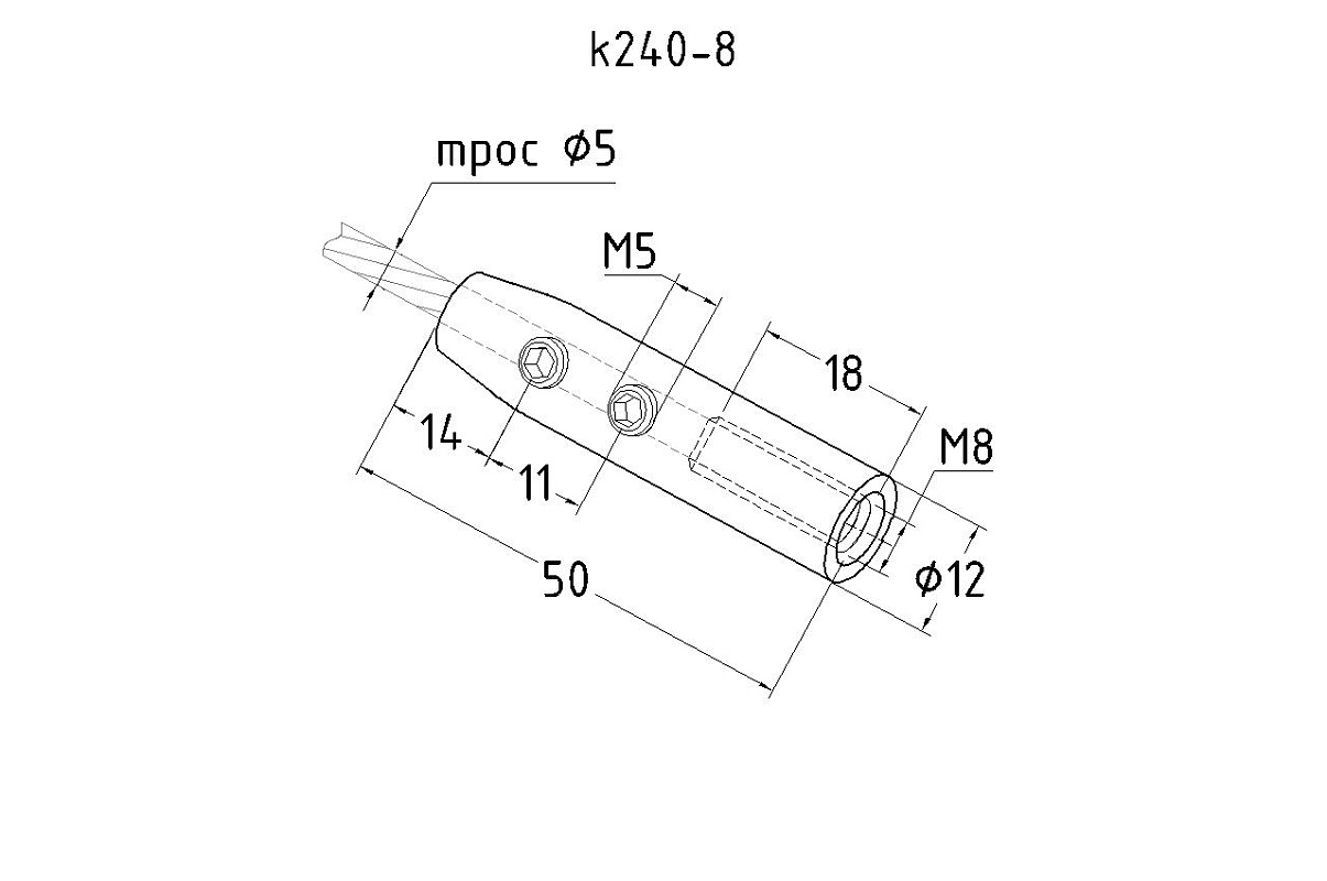 Держатель тросика Ø5 мм, короткий 50х12, прямой, под М8, полированный (два винта крепления троса) k240-8