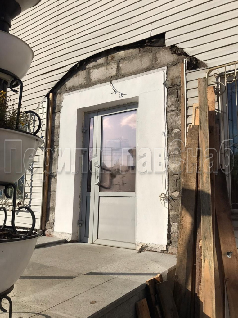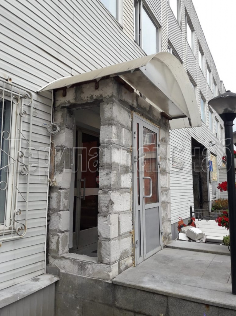 Конструктив: Козырёк на каркасе из нержавеющей стали AISI 304 с дополнительными поручнями на крыльце, навес выполнен из монолитного поликарбоната 8.0 мм.
