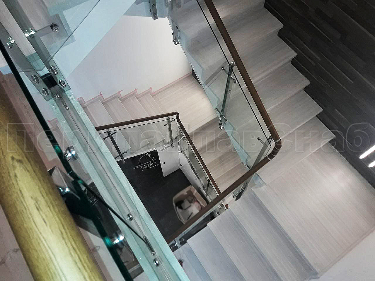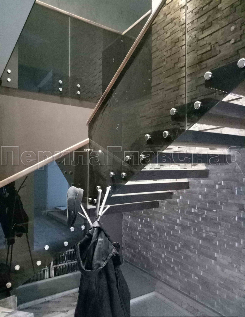 Ограждения лестницы без поручня с зажимными стеклодержателями и стойками в Омске. Готовые проекты ПерилаГлавСнаб - фото 1 Ограждения лестницы без поручня с зажимными стеклодержателями и стойками в Омске. Готовые проекты ПерилаГлавСнаб - фото 2