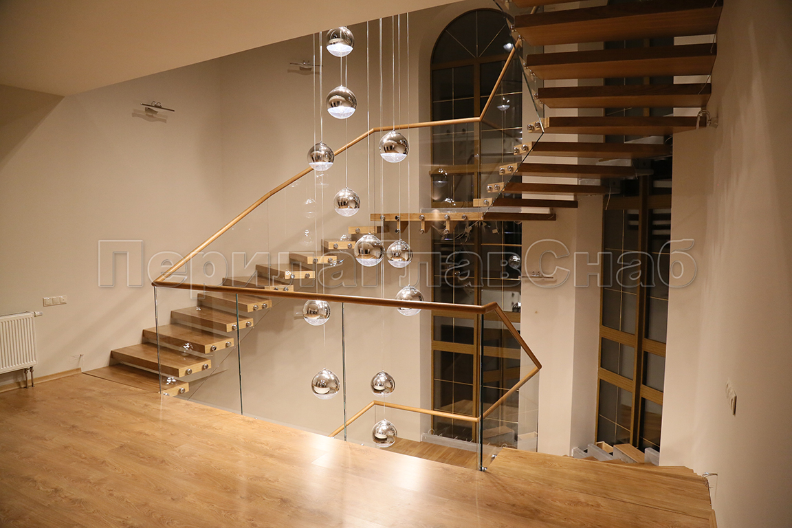 Ограждение с деревянным поручнем с зажимными стеклодержателями и стойками в Омске. Готовые проекты ПерилаГлавСнаб - фото 1 Ограждение с деревянным поручнем с зажимными стеклодержателями и стойками в Омске. Готовые проекты ПерилаГлавСнаб - фото 2