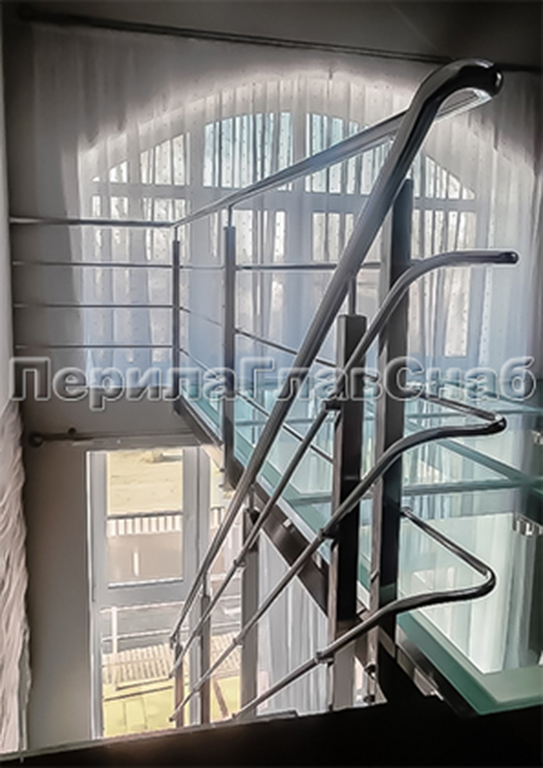 Стеклянные ограждения винтовой лестницы и баллюстрады в Омске. Готовые проекты ПерилаГлавСнаб - фото 1