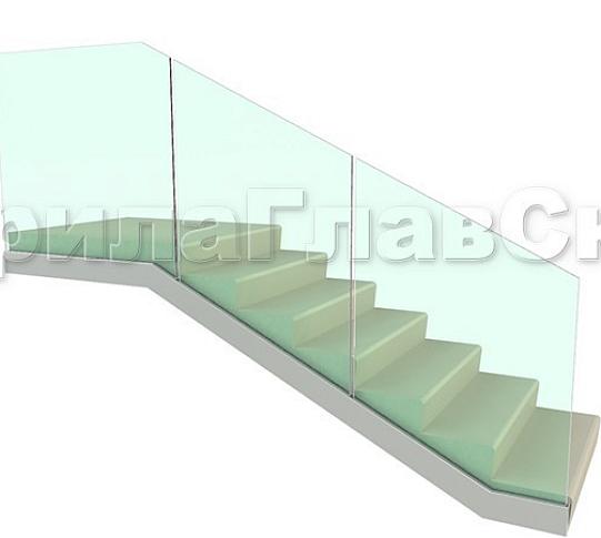 Тип крепления несущего стеклянного ограждения на алюминиевом профиле: