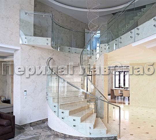 Стеклянные ограждения винтовой лестницы и баллюстрады